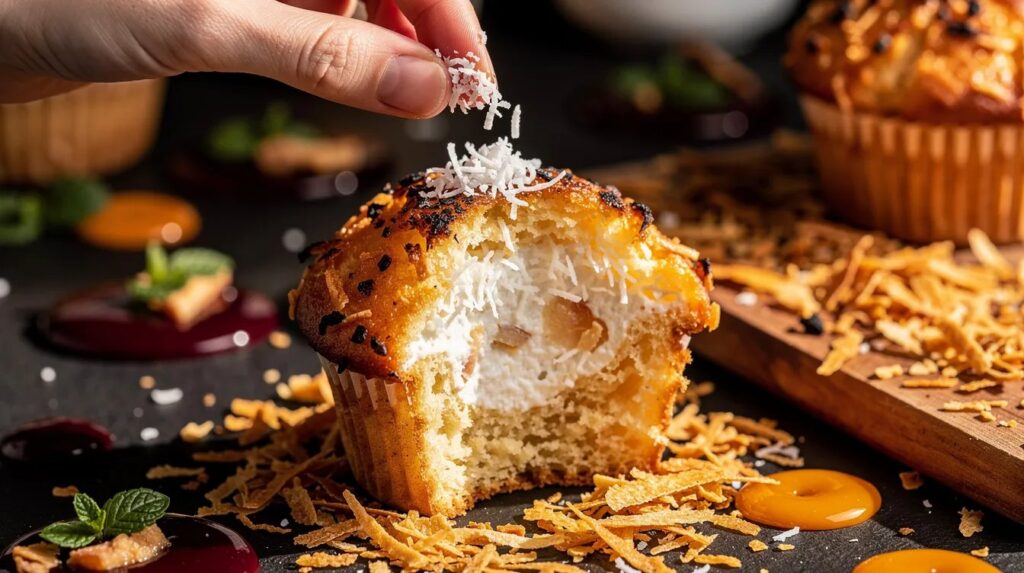 Fold desiccated coconut and coconut cream into a standard banana bread batter in place of some of the flour and milk. The result: a denser, more fragrant loaf with a golden crust. Use overripe bananas—the blacker the skin, the sweeter and more concentrated the flavour. Bake at 170 °C for 55–65 minutes.