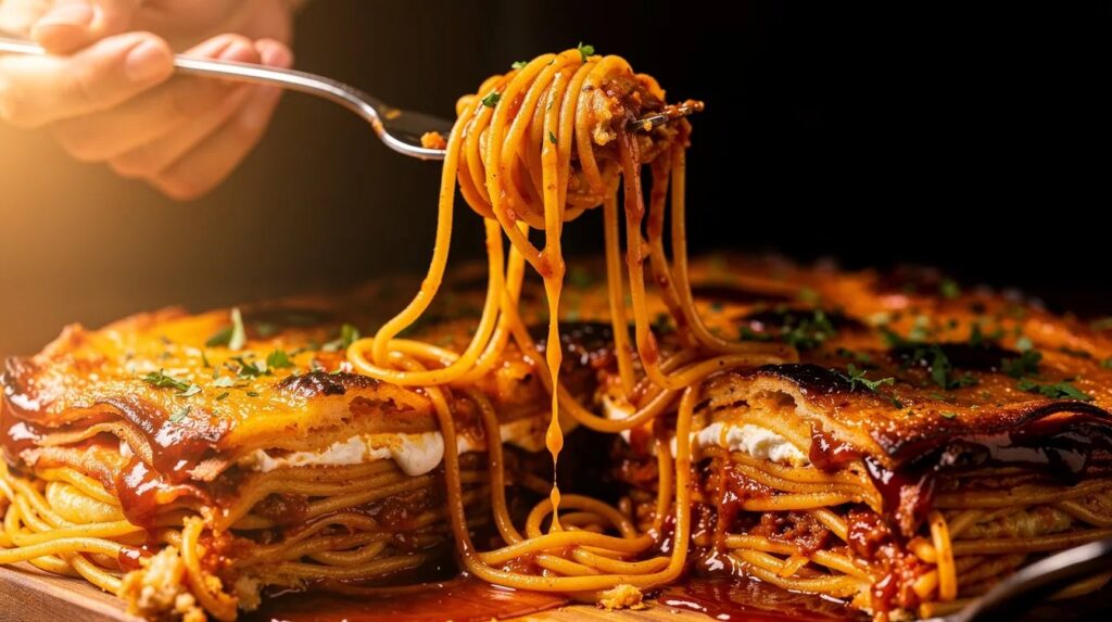 Baked pasta dishes have deep roots in Southern Italian cooking – pasta al forno has been a Sunday tradition for generations, long before lasagna became the go-to baked pasta in the English-speaking world. The logic is the same: combine cooked pasta with sauce, add cheese, and let the oven do the final job of melding flavours and creating that irresistible crust. Spaghetti, with its long strands, traps sauce differently from flat lasagna sheets or short tubes of rigatoni. This creates unique pockets and tangles where cheese pools and sauce concentrates, resulting in a distinct texture.