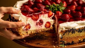 What makes this version worth bookmarking is its make-ahead nature. You build it the night before, let the fridge do all the work, and pull out a cheesecake that holds its shape, tastes like summer preserved in cream, and slices cleanly without a single crack — because there was never any baking to crack in the first place. A simple biscuit base, a whipped filling laced with real strawberries, and a glossy berry topping that sets like stained glass. Time to clear a shelf in the fridge.