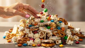 If you haven't made it yet, here's what you need to know: Bunny Bait is a no-bake mix of pretzels, cereal, melted white chocolate, M&M's and sprinkles, tossed together and broken into shards once set. It takes barely fifteen minutes of actual hands-on work, it's wildly forgiving if your measurements are approximate, and it doubles as a gift, a centrepiece and a keep-the-kids-busy activity all at once. Roll up your sleeves — this one practically makes itself.