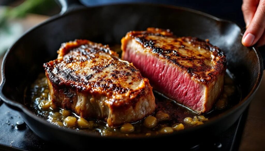 A heavy stainless-steel skillet works almost as well, provided it is preheated thoroughly before adding oil. Avoid non-stick pans for this application: they cannot safely withstand the high heat required for a proper sear, and the surface texture does not promote the same crust formation. A carbon steel pan — lighter than cast iron but with similar heat retention — is an excellent alternative if cast iron is not available.