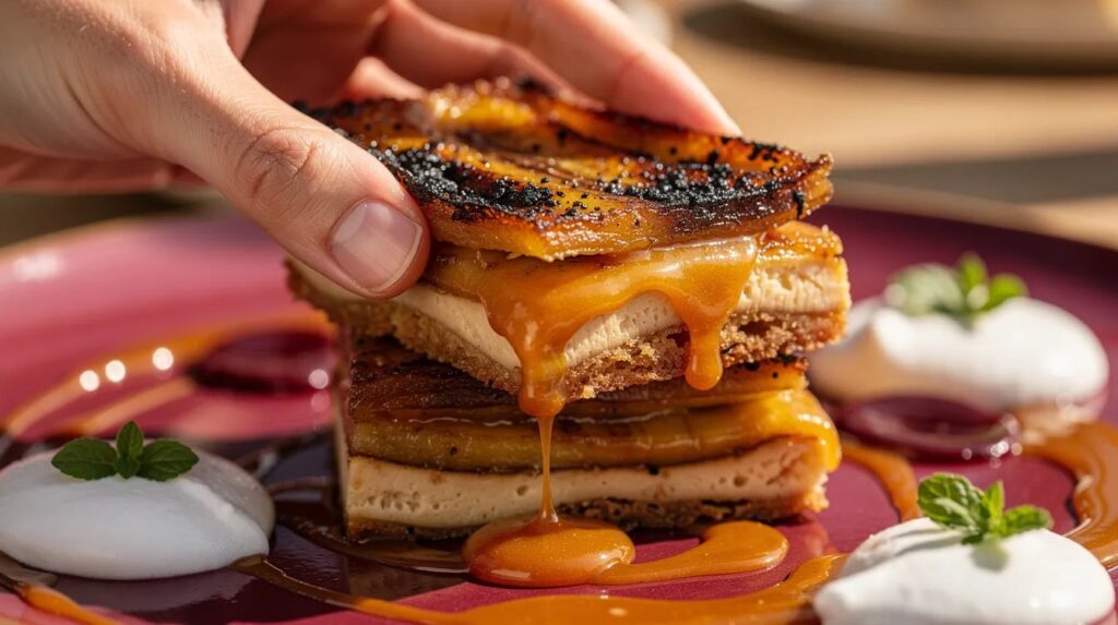 There's something about the shift into warmer weather that makes you crave desserts with a little more personality — less heavy pastry, more soft custard, ripe fruit, and that golden, almost toffee-like sweetness you get from bananas cooked low and slow. These caramelised banana pudding bars hit that exact note. They sit somewhere between a classic banana pudding and a baked cheesecake bar, with a buttery biscuit base, a thick vanilla custard layer rippled with deeply caramelised bananas, and a crown of barely torched meringue. The whole thing sets up in the fridge and slices cleanly into bars you can eat with your hands — no spoon, no bowl, no fuss.